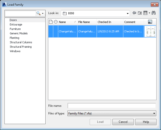 V aplikaci Revit můžete v úložišti vyhledat (nebo vybrat pomocí procházení) soubory rodin aplikace Revit a načíst je do aktuálního projektu. Funkce Načíst rodinu podporuje typy souborů RFA s katalogy typů nebo bez nich.