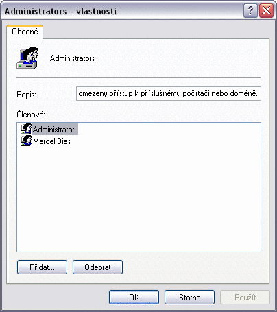 Přidání účtu do skupiny Správci systému Windows