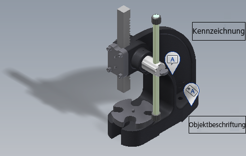 dargestellt. Weitere Informationen finden Sie in der Hilfe zu Inventor Factory unter dem Thema Anmerkungen - Kennzeichnungen.