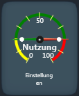 Zeigt die gesamte Maschinennutzung als genutzter Prozentsatz an. Dieser Wert hängt mit der Stationseigenschaft Betriebszeit (%) zusammen. |