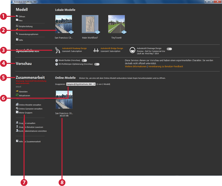 Autodesk InfraWorks 360 starten oder das aktuelle Modell schließen, wird die Startseite angezeigt: