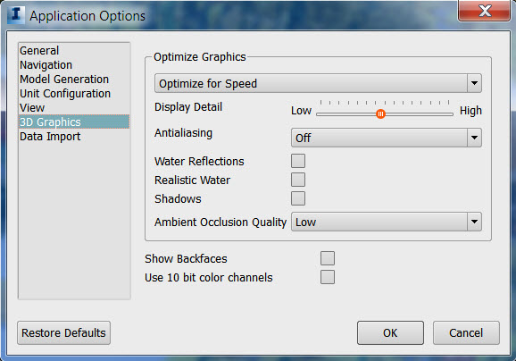 - Detail anzeigen gibt die Detailgenauigkeit für Gelände, generierte Objekte und 3D-Objekte an. Weitere Informationen finden Sie auch unter So stellen Sie die Detailgenauigkeit nach Objekttyp ein.