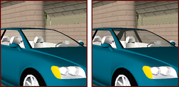 Wenn die Option aktiviert ist (rechts), werden innere Details einiger Möbelmodelle angezeigt. Wenn die Option deaktiviert ist (links), sieht das Modell aus, als fehlten einige Details. |