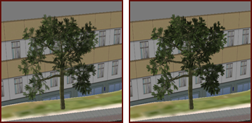 Wenn die Option aktiviert ist (rechts), wird die der Sonne abgewandte Seite und die von der Sonne beleuchtete Seite der Blätter angezeigt. Wenn die Option deaktiviert ist (links), wird nur die von der Sonne beleuchtete Seite angezeigt. |