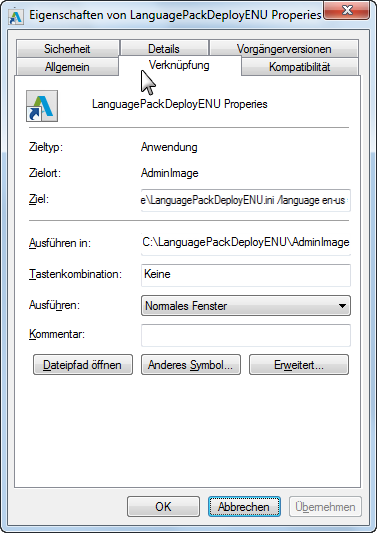Die Zielzeile der Language Pack-Einrichtungsverknüpfung kann problemlos in ein Einrichtungsskript gängiger Netzwerkverwaltungswerkzeuge, wie z. B. Microsoft SCCM, eingefügt werden. Dadurch können auch in großen Unternehmensnetzwerken unbeaufsichtigte und effiziente, mehrsprachige Inventor-Einrichtungen vorgenommen werden.
