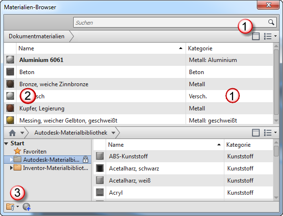 Sperr- und Aktualisierungssymbol Während einer Änderung an der gemeinsam genutzten Bibliothek wird für die Bibliothek sowohl im Material- als auch im Objekt-Browser ein Sperrsymbol angezeigt.In der gemeinsam genutzten Bibliothek für den Material-Browser und den Objekt-Browser wird ein Aktualisierungssymbol als Hinweis darauf angezeigt, dass ein Dokumentmaterial und/oder eine Darstellung veraltet ist. Durch Klicken auf das Aktualisierungssymbol erfolgt eine Aktualisierung.