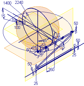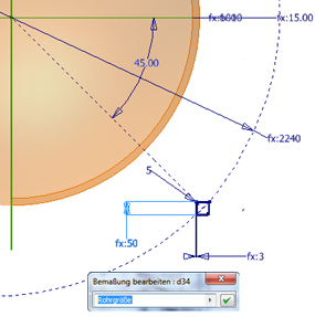 Die kugelförmige Konstruktionsfläche ist das Schlüsselelement in dem Bauteil. Der Durchmesser der Kugel bestimmt die übrige Geometrie in diesem Rahmen und damit die Größe von Bauteilen, die von diesem Rahmen abgeleitet werden.