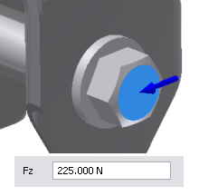 - Geben Sie für die Komponente Fz den Wert 225 ein. Hierdurch werden Größe und Richtung der Kraft festgelegt.