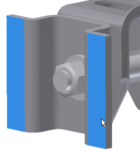 - Wählen Sie die gewünschten Flächen aus. Es können mehrere Flächen ausgewählt werden. In diesem Fall stellen die Flächen eine starre Verbindung dar, die später im Fertigungsprozess auftritt.