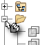 - Klicken Sie zur Auswahl einer Ursprungsebene (die derzeit nicht angezeigt wird) auf das Symbol zum Ein-/Ausblenden neben dem Ordner Ursprung der Baugruppe, um den Ordner zu erweitern.