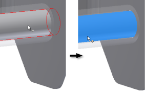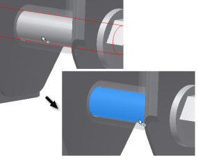 Verschieben Sie den Cursor über den Bereich, in dem die Schraubenkomponente die Halterung passiert. Wenn die zylindrische Fläche der Halterung hervorgehoben wird, klicken Sie darauf, um sie auszuwählen.