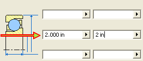 Der Wert für den Innendurchmesser des Lagers (2 in) wird in das Feld Von eingefügt.
