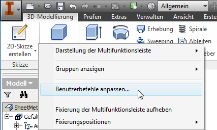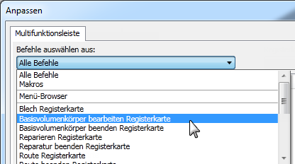 - Klicken Sie in dem Dialogfeld im Dropdown-Menü Befehle auswählen aus auf die Registerkarte 3D-Modell.
