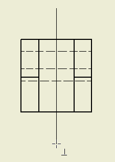 Während der Erstellung einer Schnittansicht können Sie mit den Funktionen von Inventor beim Zeichnen der Schnittlinie geometrische Beziehungen ableiten. In diesem Beispiel verwenden Sie eine einzelne gerade Linie. In komplexeren Fällen verwenden Sie eine aus mehreren Abschnitten bestehende Linie, die durch die Leitpunkte mehrerer Elemente verläuft.