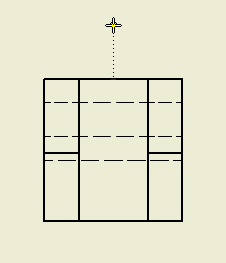 Sie werden aufgefordert, die Endpunkte der Schnittlinie einzugeben. Zeichnen Sie eine vertikale Linke, die über der Ansichtsgeometrie beginnt, sich bis unter die Ansichtsgeometrie erstreckt und durch die Mitte des Bauteils verläuft.
