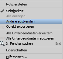 Das Kontextmenü enthält auch den Befehl Alle anzeigen, um alle Körper einzublenden.