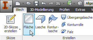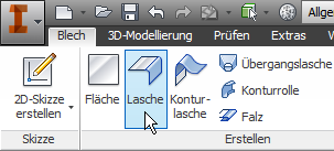 Eine Blechabwicklung können Sie zum Beispiel über den Browser oder die Multifunktionsleiste aufrufen. Erstellen Sie zunächst eine grundlegende Blechgeometrie: