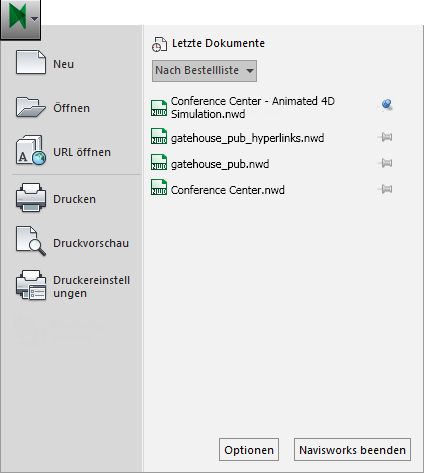 Klicken Sie zum Öffnen des Anwendungsmenüs auf die Anwendungsschaltfläche