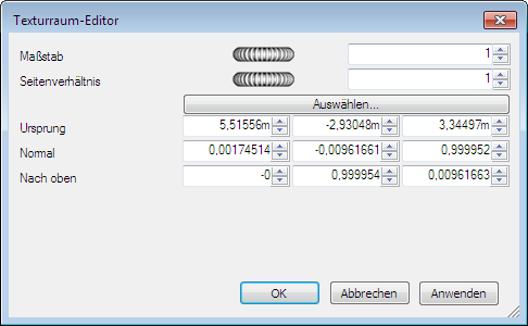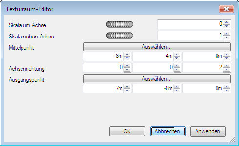 - Sie können weitere Feineinstellungen am Texturraum vornehmen, indem Sie auf die Schaltfläche Bearbeiten auf der Registerkarte Texturraum des Fensters Presenter klicken. Der entsprechende Texturraum-Editor wird geöffnet.