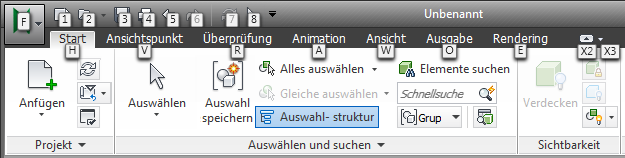 Autodesk Navisworks bietet Zugriffstasten oder Tastentipps, sodass für die Interaktion mit dem Anwendungsfenster die Tastatur statt der Maus verwendet werden kann.