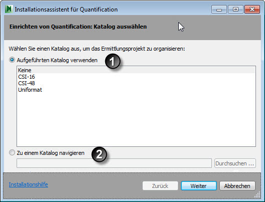 1. Aufgeführten Katalog verwenden:Die hier aufgeführten Kataloge werden in Ihrer Firma am häufigsten verwendet und sollten von einem IT-Mitarbeiter Ihres Unternehmens vor der Verwendung von Quantification integriert worden sein.