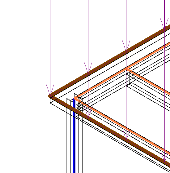 Flächenlast über einer tragenden Geschossdecke nach Auswahl von Geschossdeckenecken. Die Last ist am lokalen Koordinatensystem Projekt in negativer z-Richtung ausgerichtet.