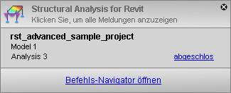 Das Symbol (Structural Analysis for Autodesk® Revit®) befindet sich in der unteren rechten Ecke des Bildschirms, auf der Taskleiste des Systems. Positionieren Sie den Mauszeiger auf diesem Symbol, oder klicken Sie mit der linken Maustaste darauf, um weitere Informationen zu den gesendeten Berechnungen anzuzeigen (siehe Benachrichtigungstypen weiter unten).