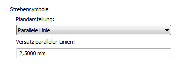 Dieser Wert kann erst eingestellt werden, nachdem Sie Parallele Linie für die Plandarstellung gewählt haben. Die parallele Linie wird im angegebenen Abstand von der Achse der vertikalen Strebe angezeigt.