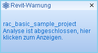Sie erhalten eine Benachrichtigung, wenn das Energieanalysemodell fertiggestellt ist. Klicken Sie auf OK, um die Energiesimulation durchzuführen. Informationen zur Validierung des Energiemodells und zu Einschränkungen finden Sie unter Prüfung von Energieanalysemodellen für Gebäudeelemente. |