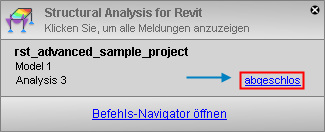 - Klicken Sie auf der Registerkarte Befehls-Navigator auf die Modellnamenverknüpfung der ausgewählten Berechnung.