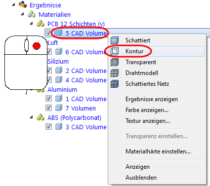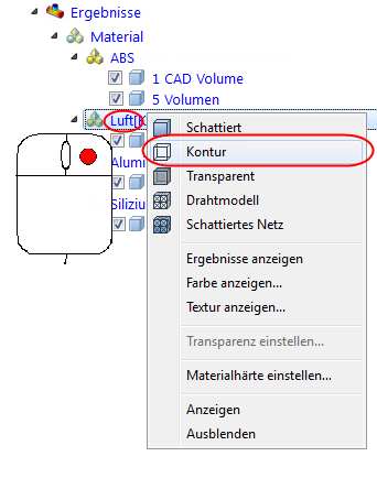 7. Gehen Sie wie folgt vor, um Gehäuse und Luftströmung als Umriss darzustellen: