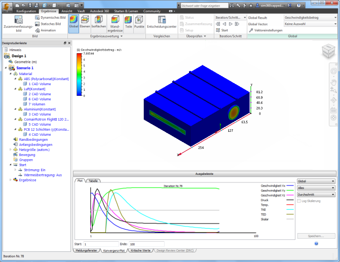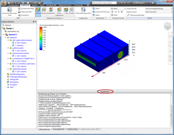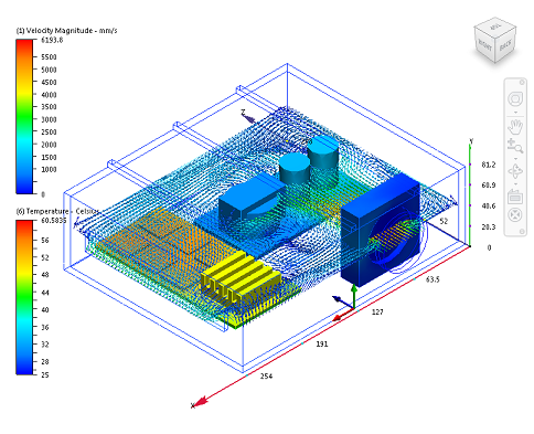 Nachdem Sie die Simulation ausgeführt haben, können Sie sich die Luftströmungen innerhalb des Gehäuses ansehen.