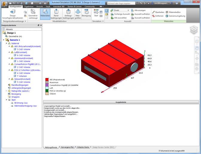 In dieser Übung war das Modell bereits eingerichtet. Wenn Sie die einzelnen Schritte selbst durcharbeiten und mehr über die Simulation der Kühlung für elektronische Geräte mit Autodesk® Simulation CFD erfahren möchten, klicken Sie hier.