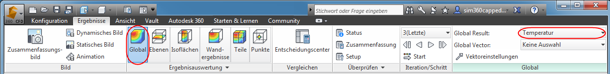 8. Klicken Sie zum Anzeigen der Komponententemperaturen auf Global, und wählen Sie im Menü Globale Ergebnisse die Option Temperatur.