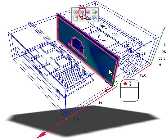 3. Klicken Sie zur Ausrichtung der Ebene mit der linken Maustaste auf die Ebene, und klicken Sie dann auf Y.