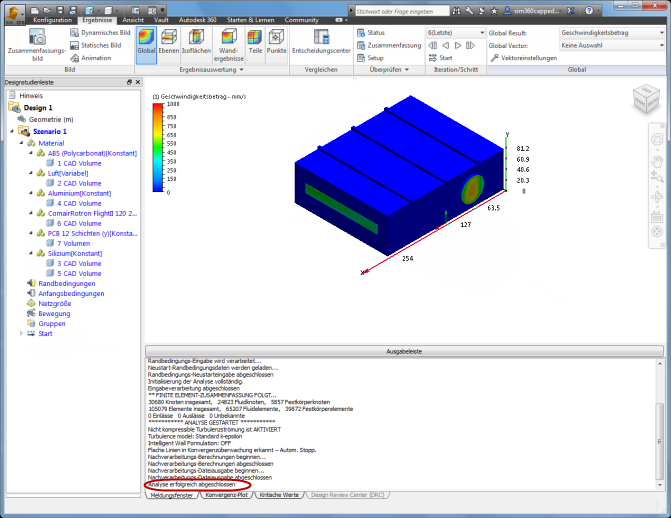 Nach Abschluss der Simulation sollte in der Ausgabeleiste die Meldung Analyse wurde erfolgreich abgeschlossen angezeigt werden: