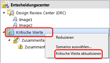Klicken Sie im Entscheidungscenter mit der rechten Maustaste auf Kritische Werte, und klicken Sie auf Kritische Werte aktualisieren.