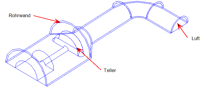 Die Analysegeometrie besteht aus drei Teilen: der äußeren Rohrwand, dem Teller und der Luft: