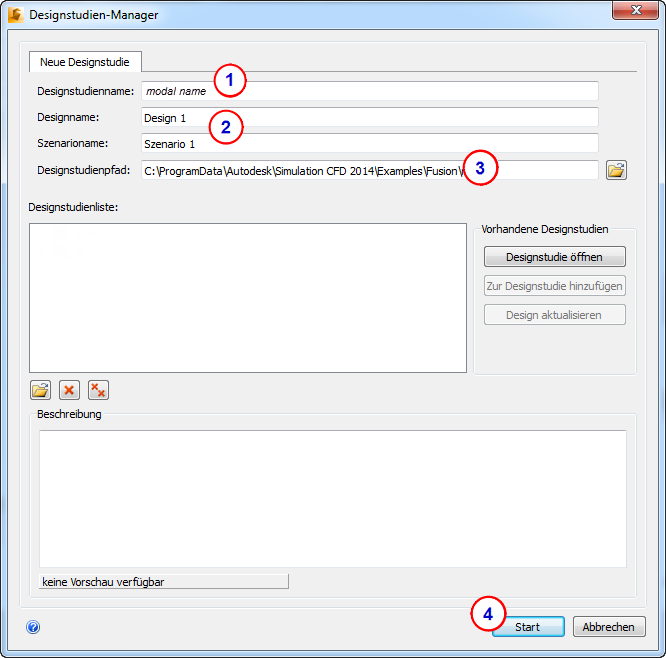 Der Designstudien-Manager wird geöffnet. So erstellen Sie eine neue Designstudie: