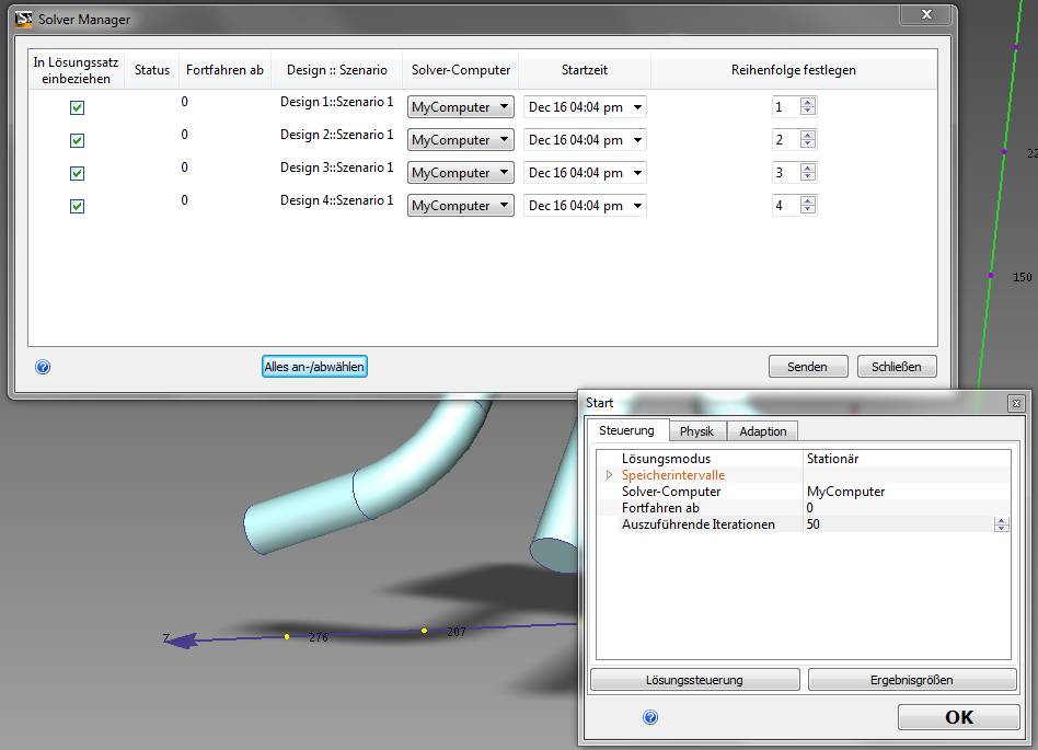 Wenn die Ausführung aller vier Szenarios abgeschlossen ist, öffnen Sie Autodesk Simulation CFD und aktivieren jedes Szenario, um die Ergebnisse in die Benutzeroberfläche zu laden.
