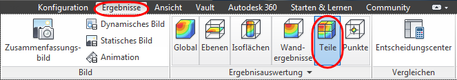 Klicken Sie auf der Registerkarte Ergebnisse auf Teile: