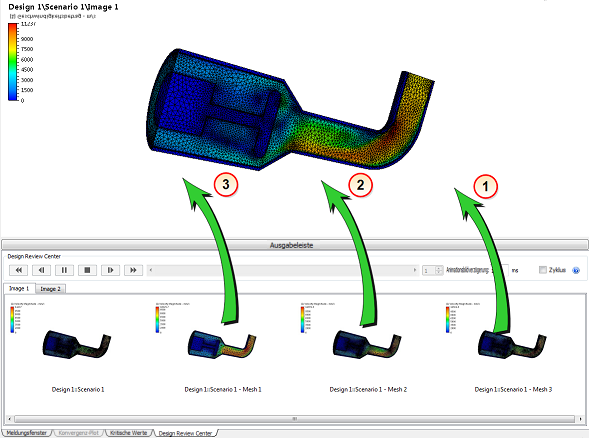 Vergleichen Sie die vier Netze mithilfe des Schiebereglers und den VCR-Steuerelementen im Design Review Center-Bereich.