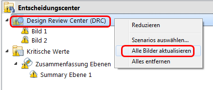 Klicken Sie im Entscheidungscenter mit der rechten Maustaste auf den Zweig Design Review Center, und wählen Sie Alle Bilder aktualisieren.