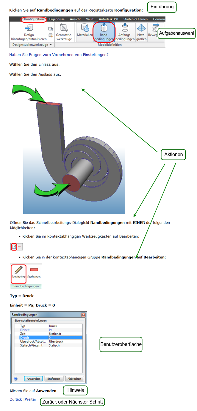 Beim Durcharbeiten der Beispiele ist es hilfreich, den Browser und Autodesk Simulation CFD nebeneinander zu positionieren. Die geringe Breite des Schrittlayouts ermöglicht eine Verringerung der Fensterbreite des Browsers.