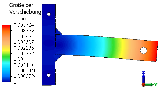The analysis proceeds and the model displays in the Results environment. By default, the displacement magnitude is presented initially.