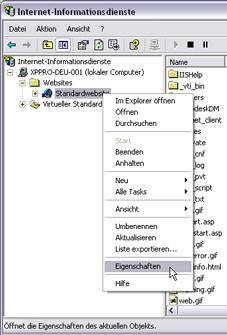 - Klicken Sie mit der rechten Maustaste auf Vorgabewebsite, und wählen Sie dann Eigenschaften aus.