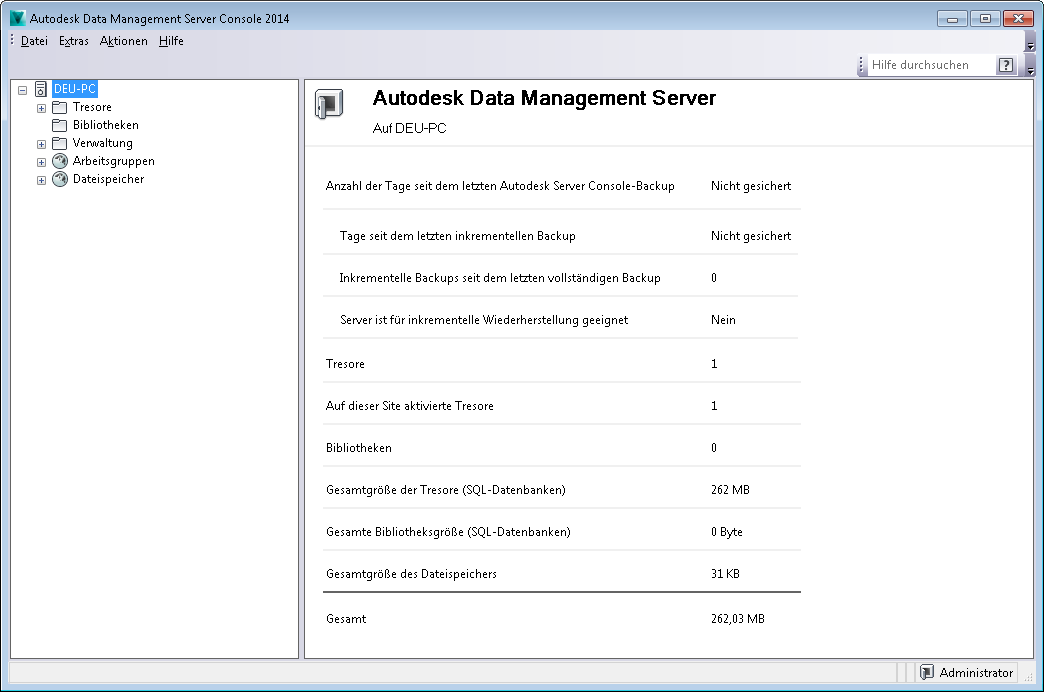 Eine Zusammenfassung der Statistiken des Tresor-Servers wird angezeigt. Die Statistik enthält Folgendes: