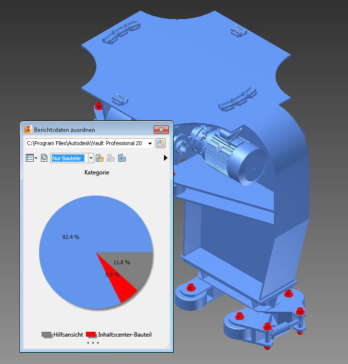 Ein Bericht wird erstellt, indem alle Dateien im aktuellen Modell einschließlich der Anhänge verwendet werden. Daher korreliert das resultierende Diagramm möglicherweise nicht 1:1 mit den im Ansichtsbereich angezeigten Dateien.