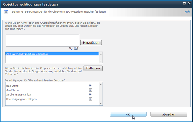 Dieser Benutzer benötigt Lesezugriff auf die Objekte, die Vault in SharePoint erkennen soll.