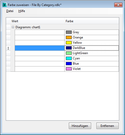 Geben Sie den genauen Diagrammelementnamen in das Feld Wert ein, und wählen Sie anschließend eine Farbe aus, um sie dem Diagrammelement zuzuweisen.